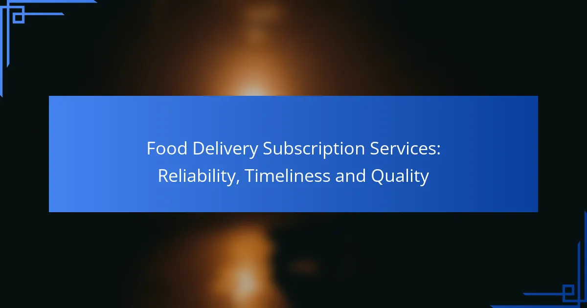 Reliable food delivery subscription services consistently provide quality meals on time, with minimal issues. Key factors to consider include customer reviews, service consistency, and overall satisfaction ratings.
